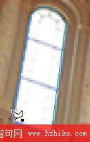 多角形套索工具的這個點擊和-釋放-向前移動稱之為縫合一個選取框.繞著窗戶繼續選取。直到將指針移到開始選擇的位置。這時“多邊形套索”指針旁邊出現一個灰色小方塊,指示您即將完成選擇。單擊以完成選擇