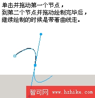 調整好曲線找節點3的時候,這時候會帶著一個曲線的鋼筆走.