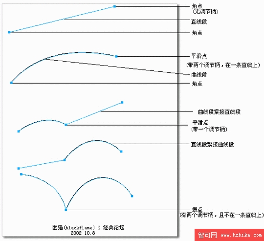 拐點:有兩個調整柄,但是不在一條直線上。