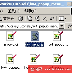 2. 在DW4中重新設置菜單樣式 如圖可以看到剛才復制到站點中來的FW4彈出菜單文件中有這樣一個文件--fw_menu.JS