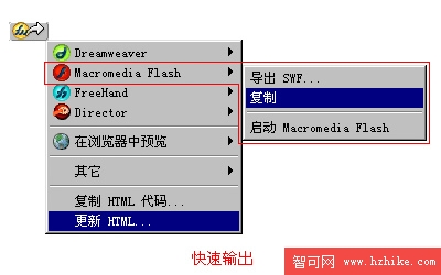 在這裡我們可以看到,Fireworks MX為更多的軟件提供了接口,以彌補其它軟件在圖形制作或處理上的不足。下面我們就仔細看看Fireworks MX和Flash MX之間的珠聯璧合吧!