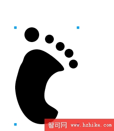 步驟5: 在工具欄上選擇Ellipse Tool,按住鍵盤Shift鍵繪制一個正圓,填充色為黑色,這就是腳印中的大拇指。復制這個正圓,並改變大小與位置,直到繪制好所有5個腳趾,最後的效果如圖所示。