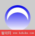 現在兩個圓形均可見,下面的圓形為高亮選擇狀態。按住shit鍵不放,選擇上面的白色原形。現在兩個處於高亮狀態。在主菜單中選擇Modify>Combine>Punch。結果是一弧形產生了。如下;
