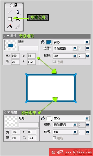 步驟三、用矩形工具拉出一個150*80px的矩形,填充為白色;作為前景。