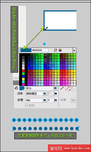 步驟五、選種剛才畫出的圓形,按ctrl+c,再按ctrl+v多次對圓形進行復制粘貼;並組合在一起。