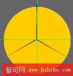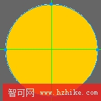 首先任意畫出一個圓(配合SHIFT鍵),顏色無所謂(最好不要是綠色,因為輔助線的顏色默認色為綠色!),因為稍候我們還要變動的。分別從上側標尺和左側標尺拖曳出一條綠色的定位線(補充介紹:首先要顯示標尺"vIEw-->rules"然後在標尺處將鼠標單擊,鼠標變成帶有雙向箭頭的形式,這時候點住鼠標不要松開,向下或者向右就會分別拖曳出相應的輔助線。)將兩條輔助線相交在圓的中心點(注意:可以參考圓周的四個路徑節點)。