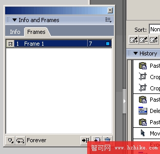 與FWMX一樣,右側的執行面板區域左邊,有個分隔條,通過它可以用拖拽方式改變執行面板區域的寬度,FW MX 2004在這裡增加了個新功能,點擊分隔條中間的小箭頭還可隱藏、顯示執行面板區域,不過這個功能目前只支持視窗平台。