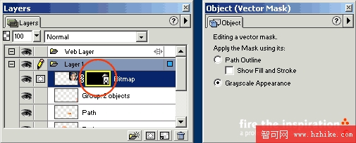 遮罩是由至少2個對象組合起來的,一個是被改變的對象,另一個是作為遮罩的對象,遮罩對象又可以分為矢量遮罩和位圖遮罩。遮罩創建之後保持了完全的可編輯性,能夠修改、刪除和禁用。