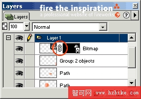 如果要取消遮罩,先點擊Layers面版中的鎖鏈圖標,解除遮罩和對象之間的關系,再將原來的遮罩從這一層中拖出來,他們就恢復為2個完全獨立的對象了。