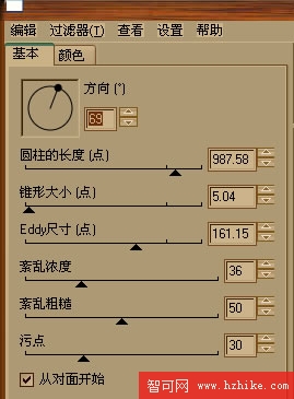 6.然後選黑色指針在點圓圈添加搖動效果也就是效果→Eye candy4000→搖動,屬性為:移動類型(Brownian動作)泡沫尺寸(36.00)彎曲數量(5.20)扭曲(20),然後在選白色指針點圓形在選效果→Eye candy4000→火,屬性如圖: