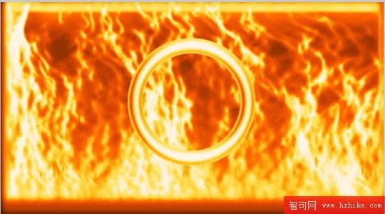 5.這樣背景的火焰就完成了~!接下來我們繼續做裡面燃燒圓圈的效果。先畫一個面圈形圓形,調整你自己要的大小,其效果和剛才背景的制作差不多。只是在4個內側陰影和內側發光的屬性裡的距離和柔化相對調小點,大約不要超過(5)其他的都不變。得到效果圖5: