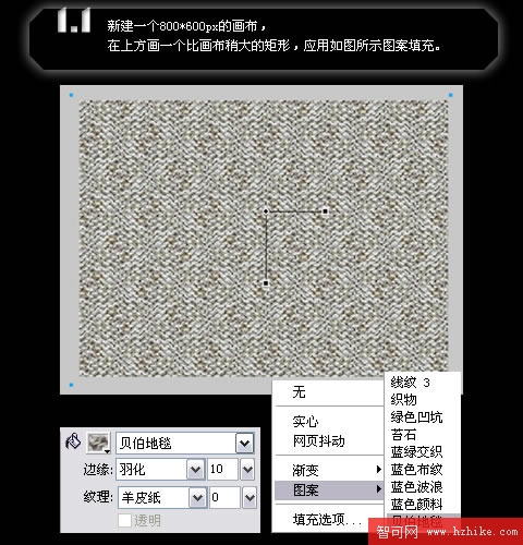新建一個800*600px的畫布,在上方畫一個比畫布稍大的矩形,應用如圖所示圖案填充。
