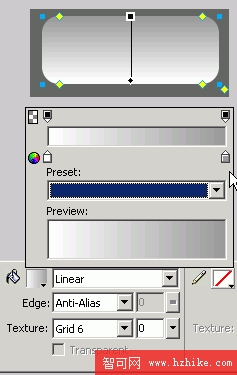 選擇方形,在屬性面板的填充選項中選擇線性漸變,設置好漸變的顏色是從灰色到白色,並調整到以下顯示的樣子。