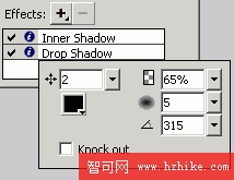 步驟三、增加下拉陰影,在屬性面板的特效一域,點加號,選擇下拉陰影。參數和效果顯示如下