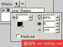 步驟二、增加內投影,在屬性面板的特效一域,點加號,選擇內部投影 (Inner Shadow) 參數和效果如下圖。