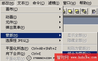 8、同時選中矩形路徑和上層的位圖對象,選擇菜單“修改|蒙版|組合為蒙版”命令,組成遮罩組。