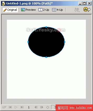 (1)新建一個大小為300×300的圖像,然後使用工具箱上的橢圓工具 繪制一個大小為139×115的橢圓,設置填充色為黑色,如圖1所示。