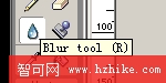 七.這時我們不用菜單裡的模糊命令,那樣的效果太差了,我們用模糊工具