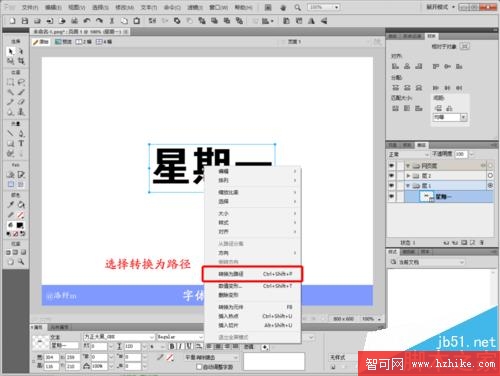 4、在這裡我們將文字轉換為路徑,!轉換為路徑後線框變為四個藍色的點分布在原先線框的四個角!,這一步非常重要,後面的操作基本就靠這裡的路徑操作了,所以請大家仔細注意