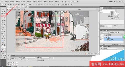 1、新建文檔,導入圖片,然後建立選區。