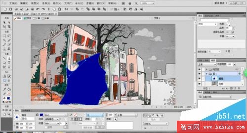 6、大家注意到了嗎?上面我做的哪個蒙版圖片模糊不清,那這是什麼原因呢?原因就在於我們在運用鋼筆工具畫蒙版區域時畫出來的區域自動填充成了藍色。這個時候我們就需要把藍色更改為白色,這樣做出來的蒙版就清晰了。