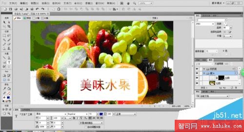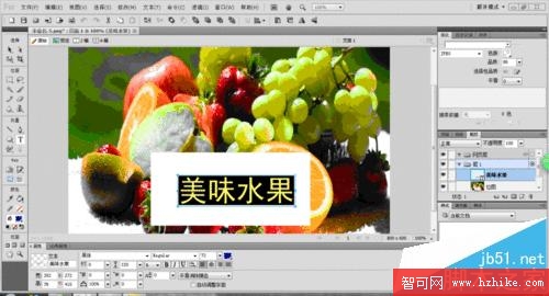 4、再到“編輯”——“粘貼於內部”,嘿嘿,這個時候我們的水果蒙版就做好了,看看文字是不是很漂亮啊。
