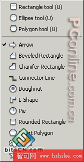 我們可以發現,在FWMX2004中,涉及到的Shape組有兩處。一是工具箱上羅列的形狀組,如下圖所示: