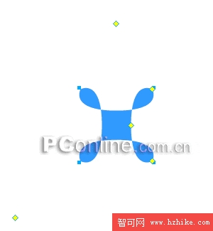 5、選中2號點,用鼠標向圖形中心方向拖動該控制點,直至出現如下圖所示圖形: