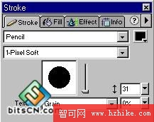 來繪制曲線。設置描邊如下圖所示。在左上部單擊畫布,然後在右下方再次單擊並拖動鼠標直到畫出合適的曲線。