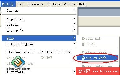 將它們全部選中,在修改菜單下選擇遮照(Mask),然後選擇“Group as Mask”,如圖8-4