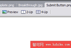 現在多文檔打開時可以使用標簽切換,類似於dwmx的風格。原來的預覽、2幅、4幅標簽被作成了按鈕放在標簽下面的工具欄區域裡,比較方便。
