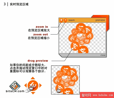 在預覽區域你還可以放大和縮小預覽效果,也可以在預覽區域拖動對象來觀察不同的部分。