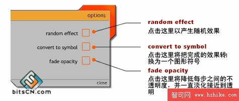 Options:此菜單控制最終輸出時的幾個參數,你可以在此設置不同步數之間的不透明度變化值,可以設置變換效果是否是隨機的,或者可以將最終的輸出效果轉換為符號。