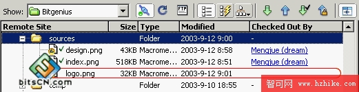 這時我們再切換到DW中,打開站點管理窗口,找到剛才編輯的文件,我們可以看到文件擁有者的信息已經顯示出來了,