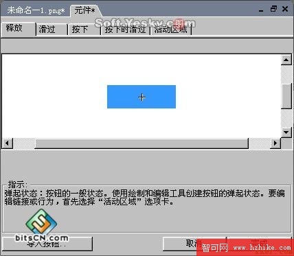 該窗口中前面的“釋放”、“滑過”、“按下”和“按下時滑過”是用來設置鼠標在觸及按鈕時,按鈕所呈現的四種狀態。而“活動區域”則用來設置按鈕在響應鼠標指針時的有效范圍。