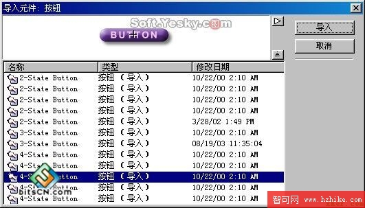 點擊“導入按鈕”則可以從Fireworks的按鈕元件庫中直接選取一種按鈕進行導入,如圖8—04。