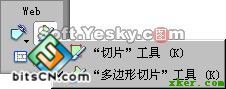 這時,我們可以使用工具條中專門為網頁鏈接而設立的“Web”工具區,從中選擇“多邊形切片”工具,如圖8—11。