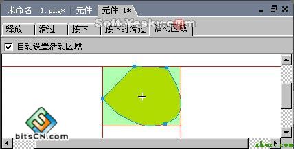 在該選項中可以對按鈕的鏈接區域進行具體的設置。通過拖動四條紅色邊線,可以調整鼠標在該按鈕內的有效鏈接范圍。而當要對圓形按鈕或不規則按鈕設置這樣的鏈接區域時,矩形的鏈接區域就會給按鈕造成一部分不必要的鼠標響應區,如圖8—10。