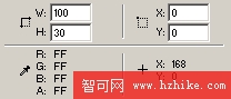 畫一個100X30像素大小的矩形,選擇Window菜單下的Info打開信息面板,直接輸入數值精確調整尺寸和位置;