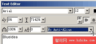 這樣輸出後才能做出細邊框效果;從工具面板上選擇文字工具,輸入文字,注意選擇文字的平滑度為No Anti-Alias(關閉反鋸齒,如圖),