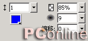 2、選中文本對象,選擇效果菜單中的“陰影和光暈|發光”效果命令,在彈出的設定框中將顏色設為“#0000FF”,其余各選項的設定請參看下圖的具體設定。