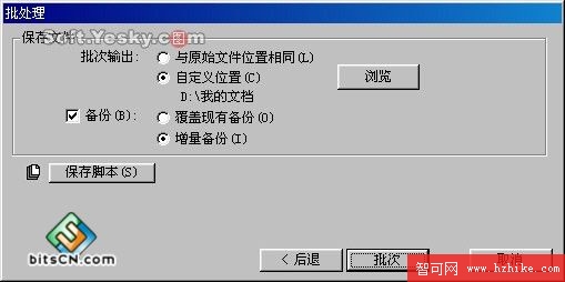 在該窗口的左邊的“批次選項”中選擇執行文件處理的動作後點擊“添加”按鈕,即可把動作加入到右邊的列表中。一次可以添加多個處理動作,而且點擊右邊列表中的兩個箭頭按鈕 ![]()