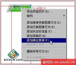 接著為該按鈕添加一個切片或熱點,並在其控制手柄的彈出菜單中選擇“添加彈出菜單”項,如圖10—11。