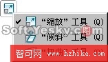 點選“縮放”工具後在文本框內會出現八個控制點和一個縮放的中心點,當鼠標移到控制點上時指針會變成雙向箭頭,此時拖動該控制點即可改變對象的形狀,如圖5—05、5—06。當按住ALT鍵的同時拖動控制點時,對象則會以縮放點為中心,使對象產生對稱式的縮放變形。