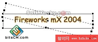 而當鼠標移到任意一個控制點的四個邊角附近時,指針會變為圓形箭頭,此時拖動該控制點進行移動,即可旋轉改變文字的方向,如圖5—07、5—08。此時改變縮放中心的位置所改變的則是旋轉點的中心位置。