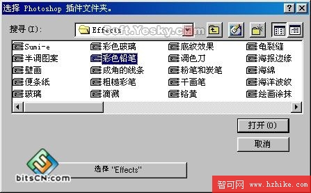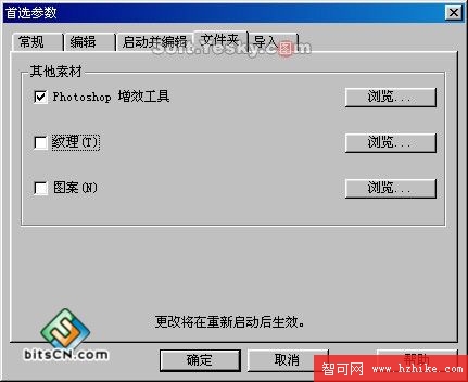 在該窗口的“文件夾”選項卡中勾選“Photoshop增效工具”後,點擊右邊的“浏覽”按鈕。然後在路徑選擇框中選擇Photoshop濾鏡的所在目錄。如圖4—08。