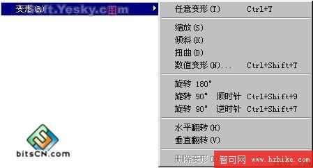 任意變形:該功能中已包括“縮放”、“傾斜”和“扭曲”功能,這些功能與工具條上的“任意變形”