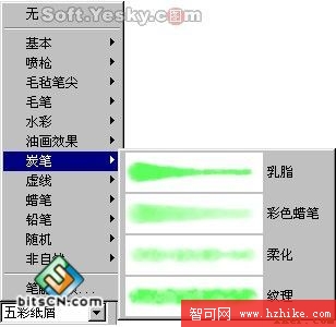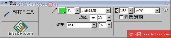 在“刷子”工具的屬性對話框中可以對刷子的色彩、大小、筆觸類形、邊緣柔化值、紋理、紋理透明度、刷子透明度、色彩模式等進行設置,如圖2—08。