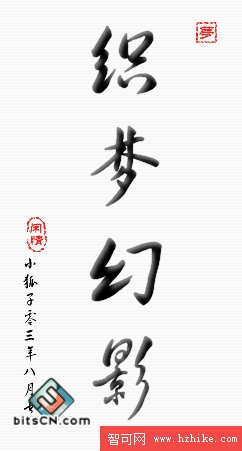 用來做毛筆字的中文字體很多,這裡“織夢幻影”及落款小字都選用了“方正黃草簡體”,大家有興趣可以選用其他的字體。