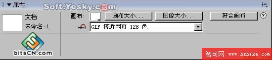 Fireworks中的畫布也就相當於圖像的背景,在繪圖的過程中為了使畫布的大小或色彩能夠和前景的圖象保持協調,我們經常要修改畫布的相關屬性。方法是,用鼠標點擊畫布,或在畫布的工作區外點擊一下,從而在屬性欄中調出畫布的屬性對話框,如圖1—08。